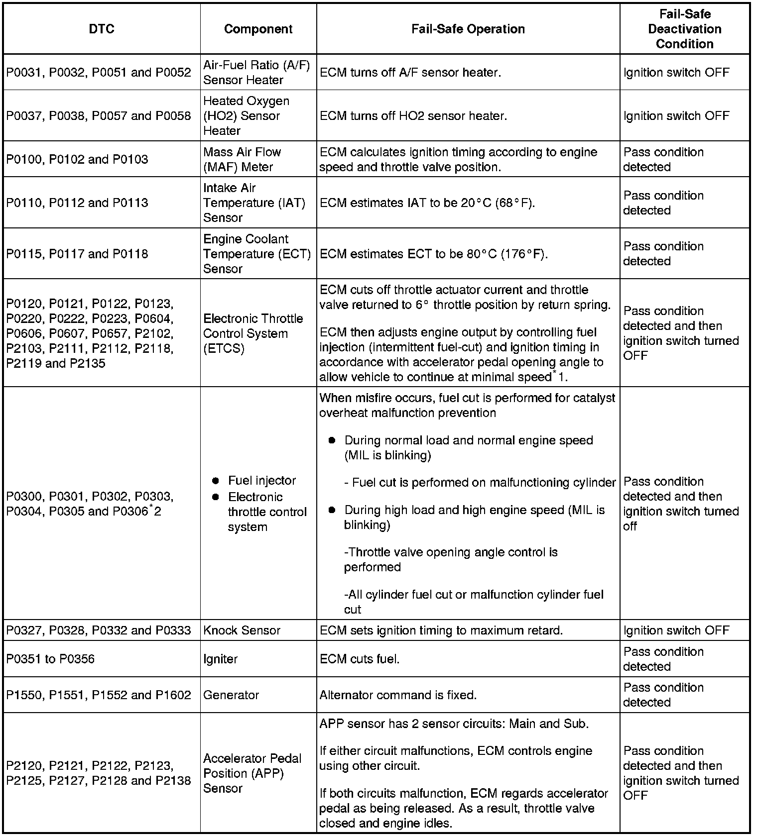 - *2: Misfire related fail-safe operations occur when catalyst overheat malfunctions occur.