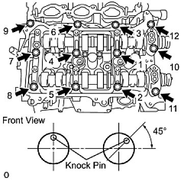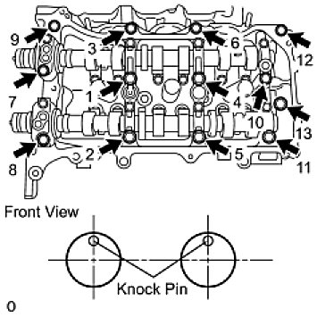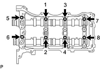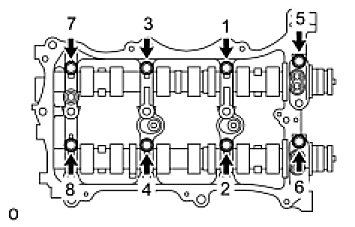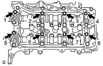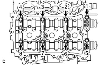 Temporarily install the 8 bolts in the order shown in the illustration.