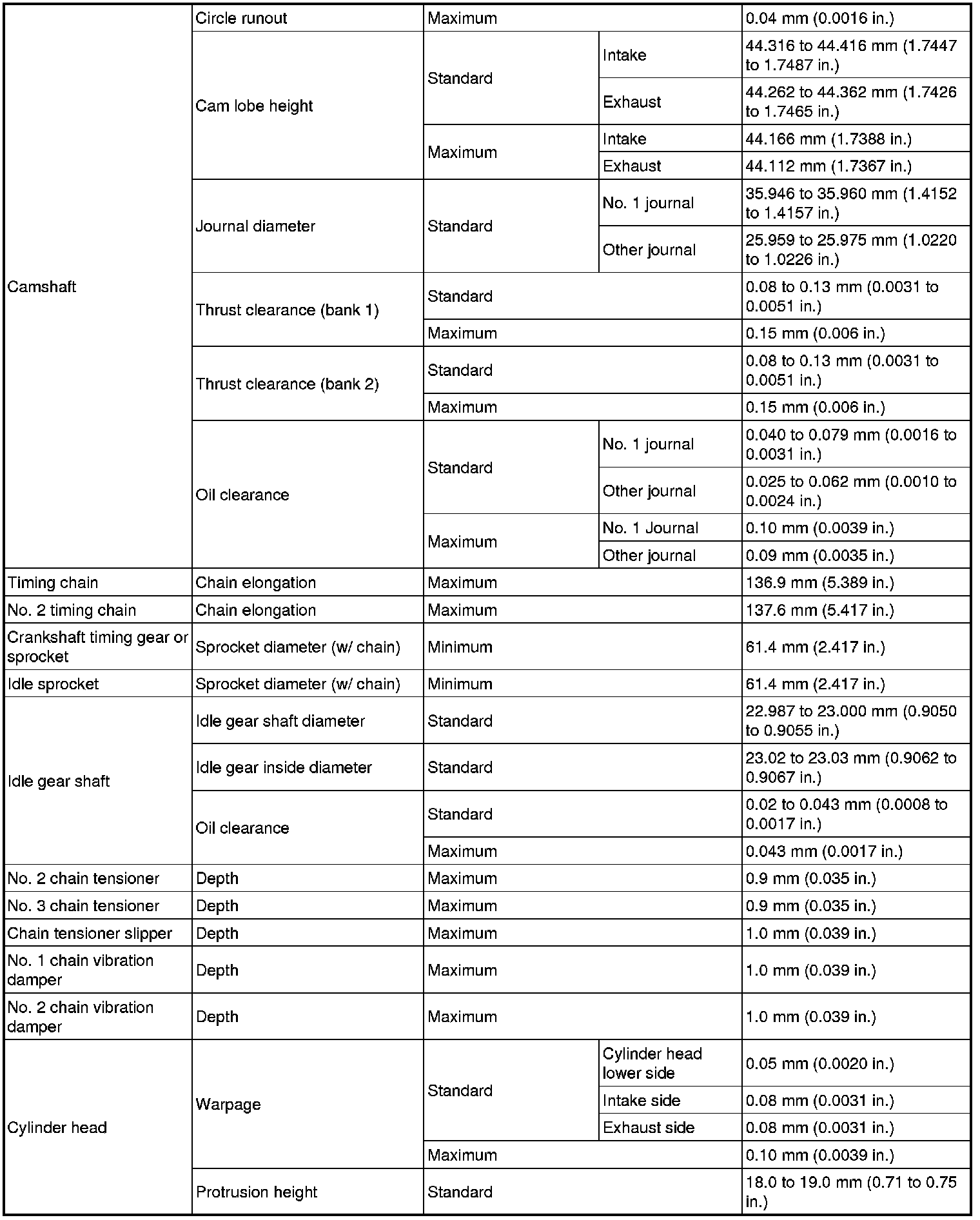 SERVICE SPECIFICATIONS: 2GR-FE ENGINE MECHANICAL: SERVICE DATA
