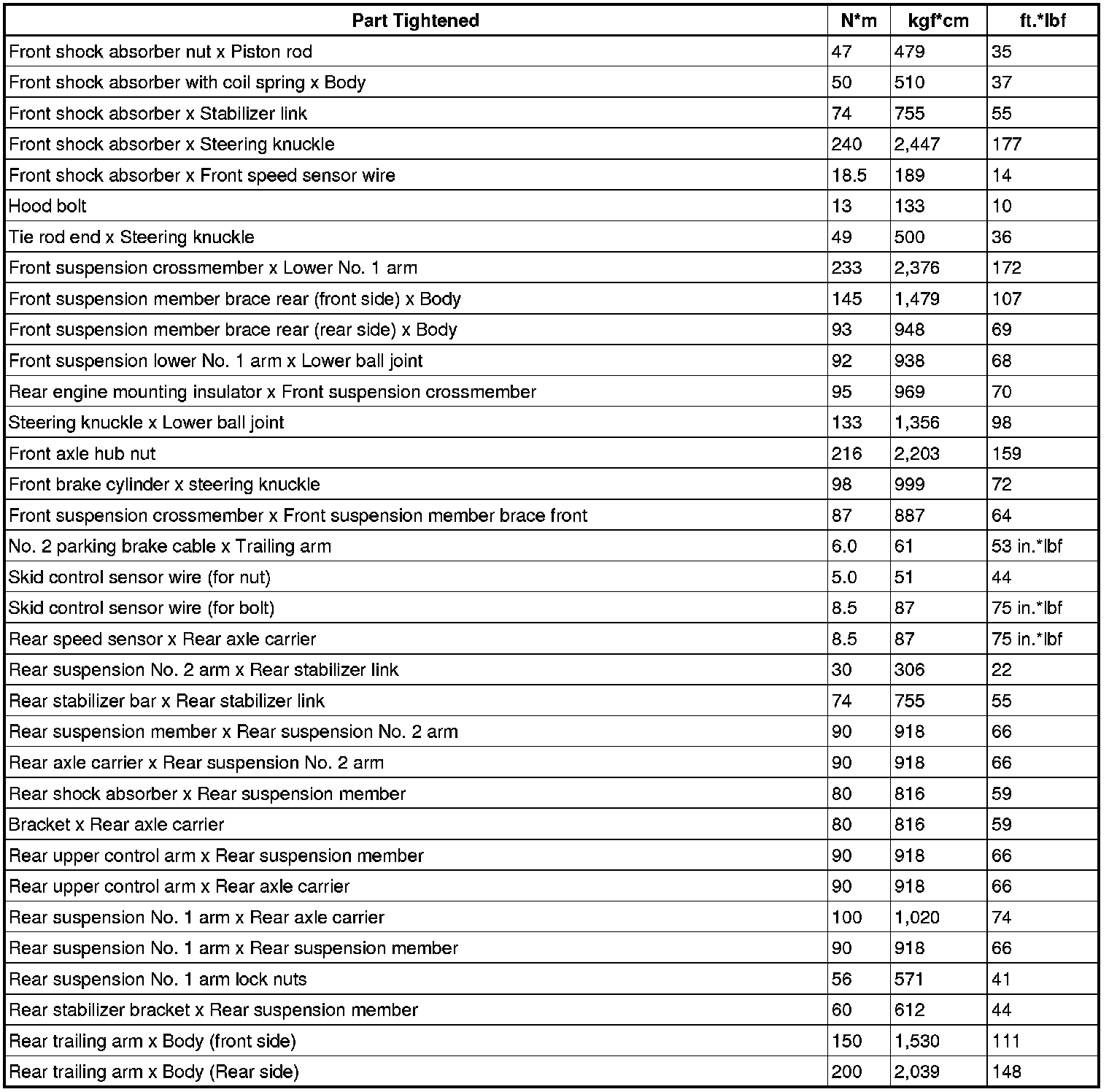 TORQUE SPECIFICATIONS