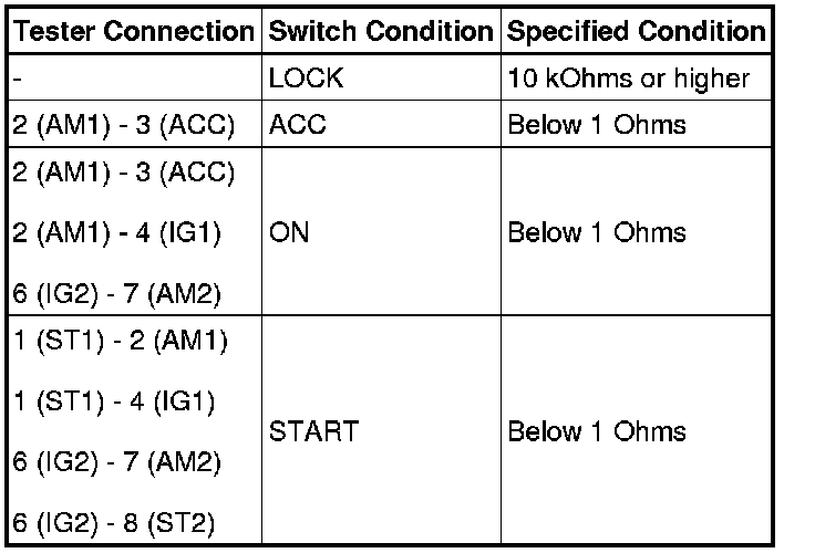 2GR-FE STARTING: IGNITION SWITCH: INSPECTION