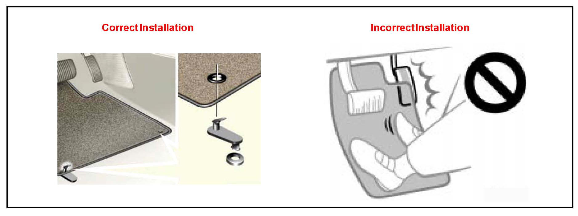 2008 model year Toyota vehicles are equipped with floor mat retaining clips to help ensure that the floor mats stay in the correct position. Attach the floor mat to the vehicle carpet using the floor mat retaining clips during Pre-Delivery Service (PDS).