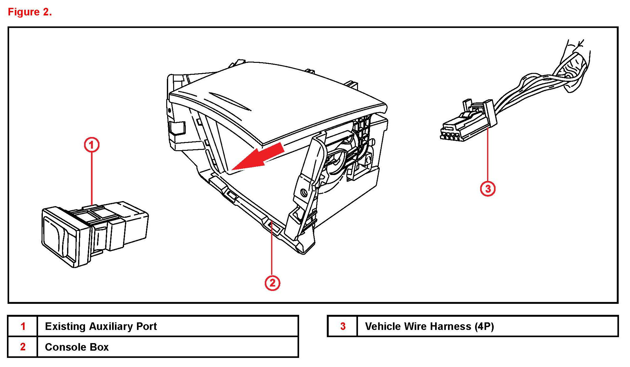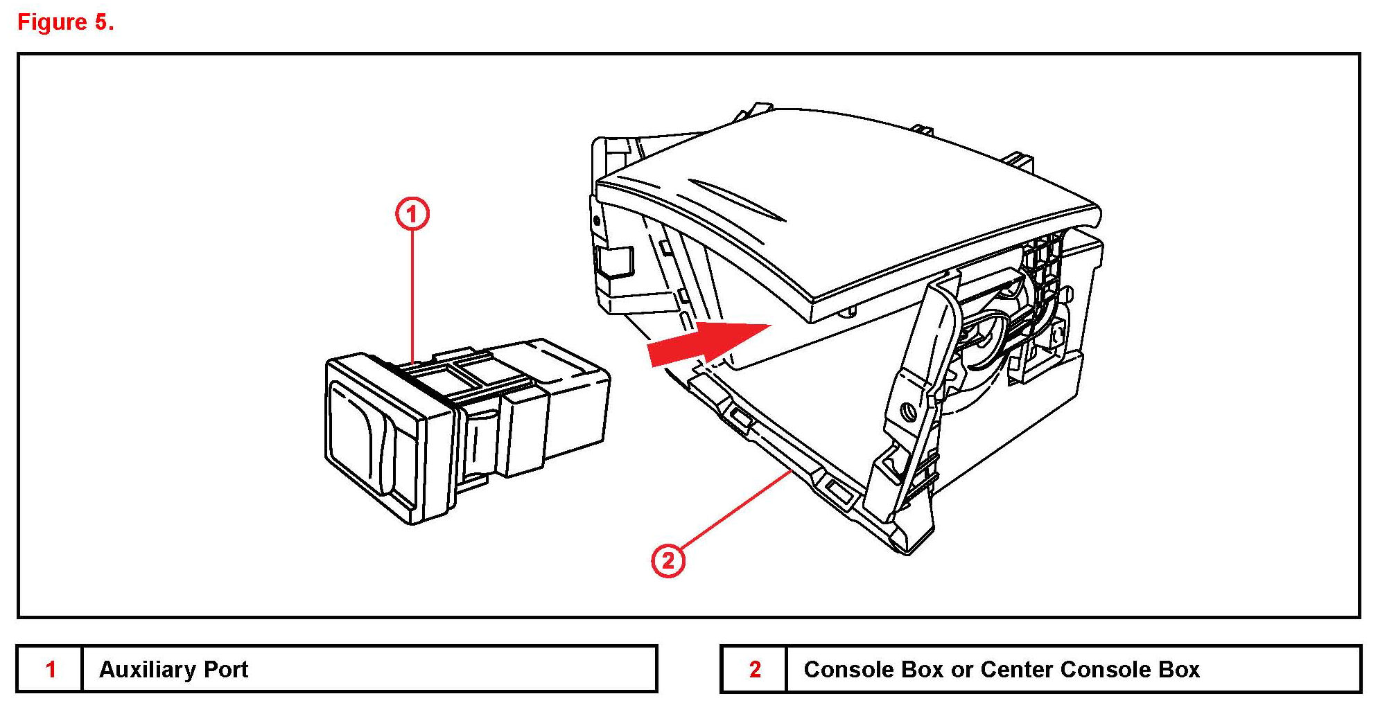 Some customers may notice noise in the auxiliary mode of their audio system when using an MP3 player or other external audio source with a charger connected to the 12V power port of the vehicle. An improved auxiliary port and in-line filter has been developed to improve this condition. Use the repair procedure below to install the new in-line filter and auxiliary port.