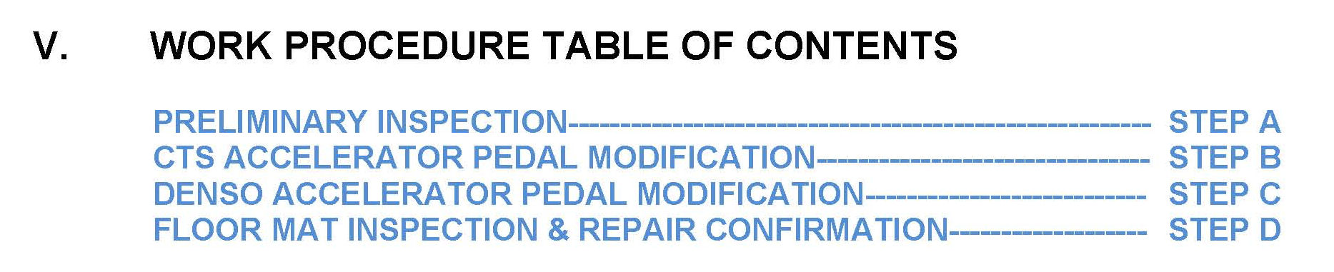 V. Work Procedure Table of Contents