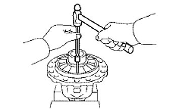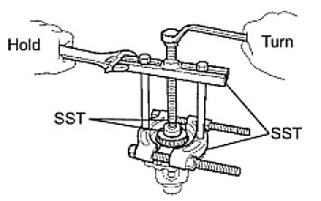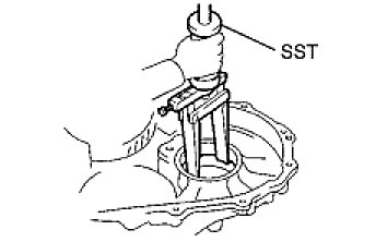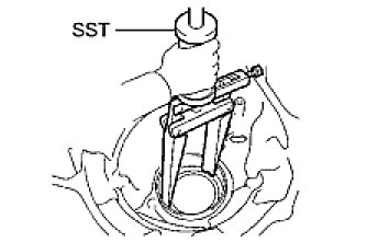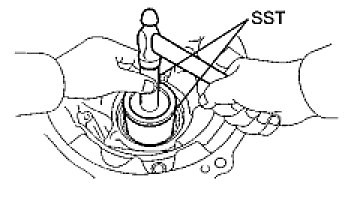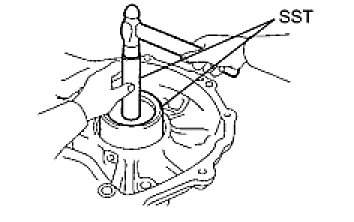 (b) Using SST, remove the front differential case rear tapered roller bearing outer race.