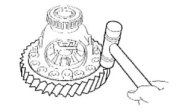 (c) Using a plastic-faced hammer, tap on the ring gear to remove it from the case.