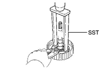 (d) Place SST on the clutch balancer and compress the overdrive clutch return spring with a press.