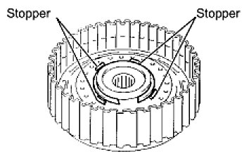 NOTE: The end gap of the snap ring should not align with any of the stoppers.