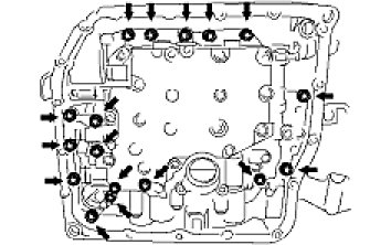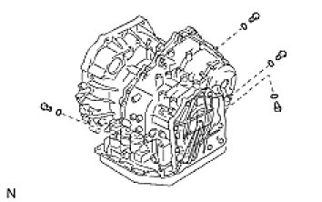 (a) Support the valve body and remove the 17 bolts and valve body.
