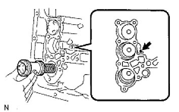(a) Apply compressed air (392 kPa, 4.0 kgf/cm2, 57 psi) to the oil hole and remove the reverse accumulator piston and spring.