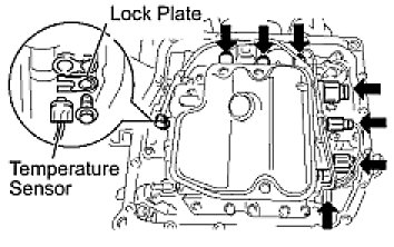 (c) Install the ATF temperature sensor with the lock plate and bolt.