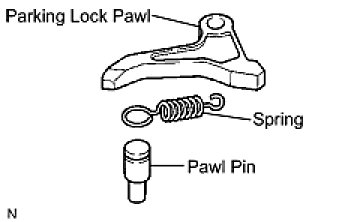 (b) Temporarily install the parking lock pawl, shaft and spring to the transaxle case, as shown in the illustration.