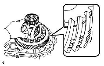 NOTE: Check the position and number of the grooves on each end face of the differential ring gear.