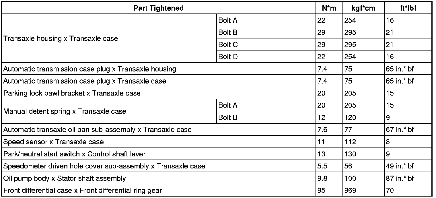 SERVICE SPECIFICATIONS: U151E AUTOMATIC TRANSAXLE: TORQUE SPECIFICATIONS