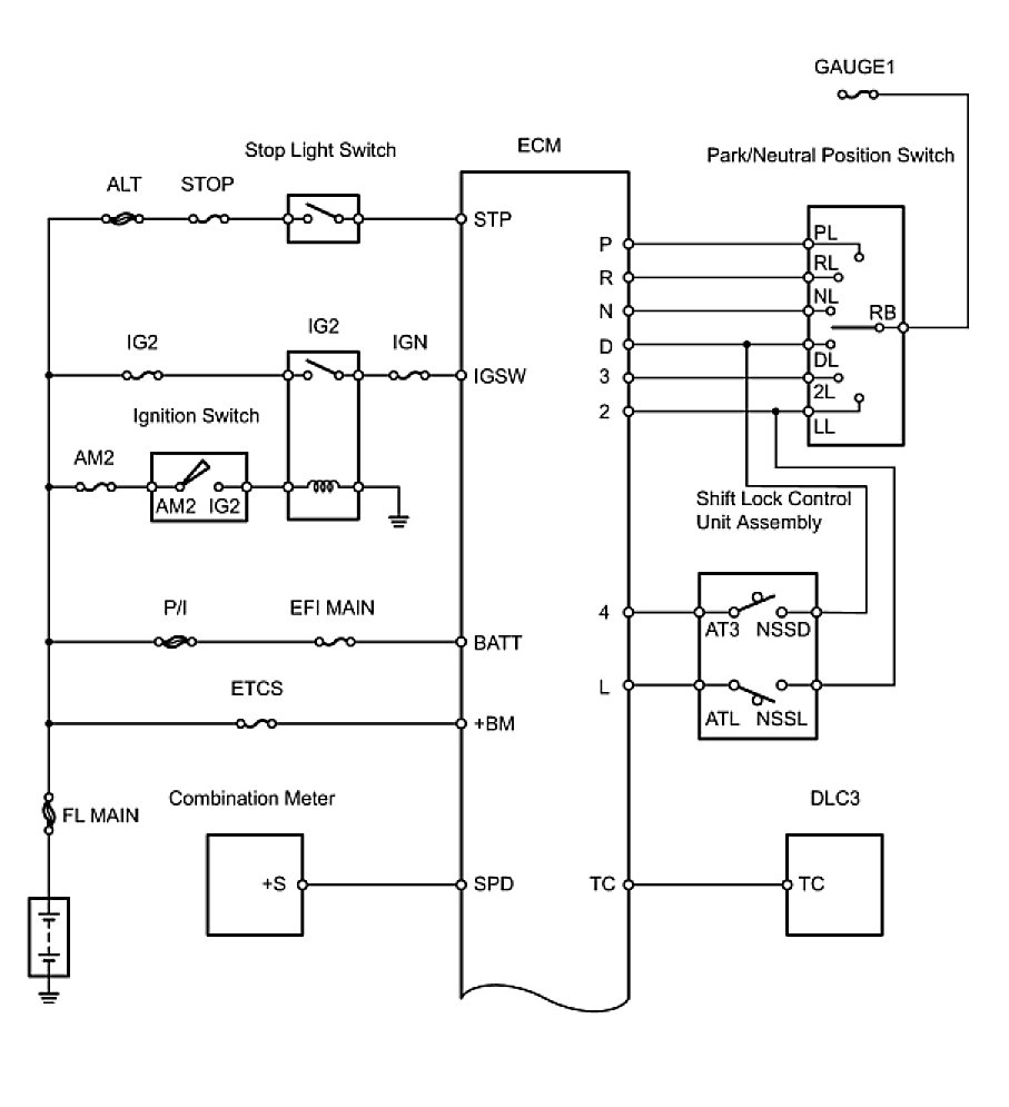 The configuration of the electronic control system in the U151E automatic transaxle is as shown in the following chart.