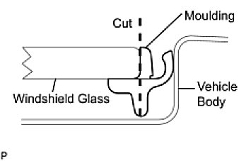 NOTE: Leave as much adhesive on the vehicle body as possible when cutting through the adhesive.