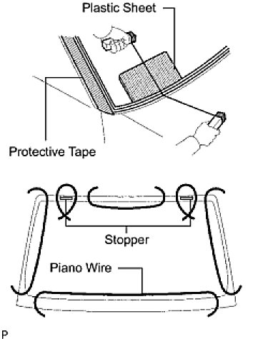 - To prevent the instrument panel from being scratched when removing the glass, place a plastic sheet between the piano wire and instrument panel.