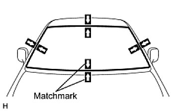 (e) Place matchmarks over the glass and vehicle body on the locations indicated in the illustration.