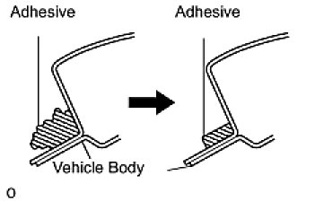 (1) On the contact surface of the vehicle body, use a knife to cut away excess adhesive as shown in the illustration.