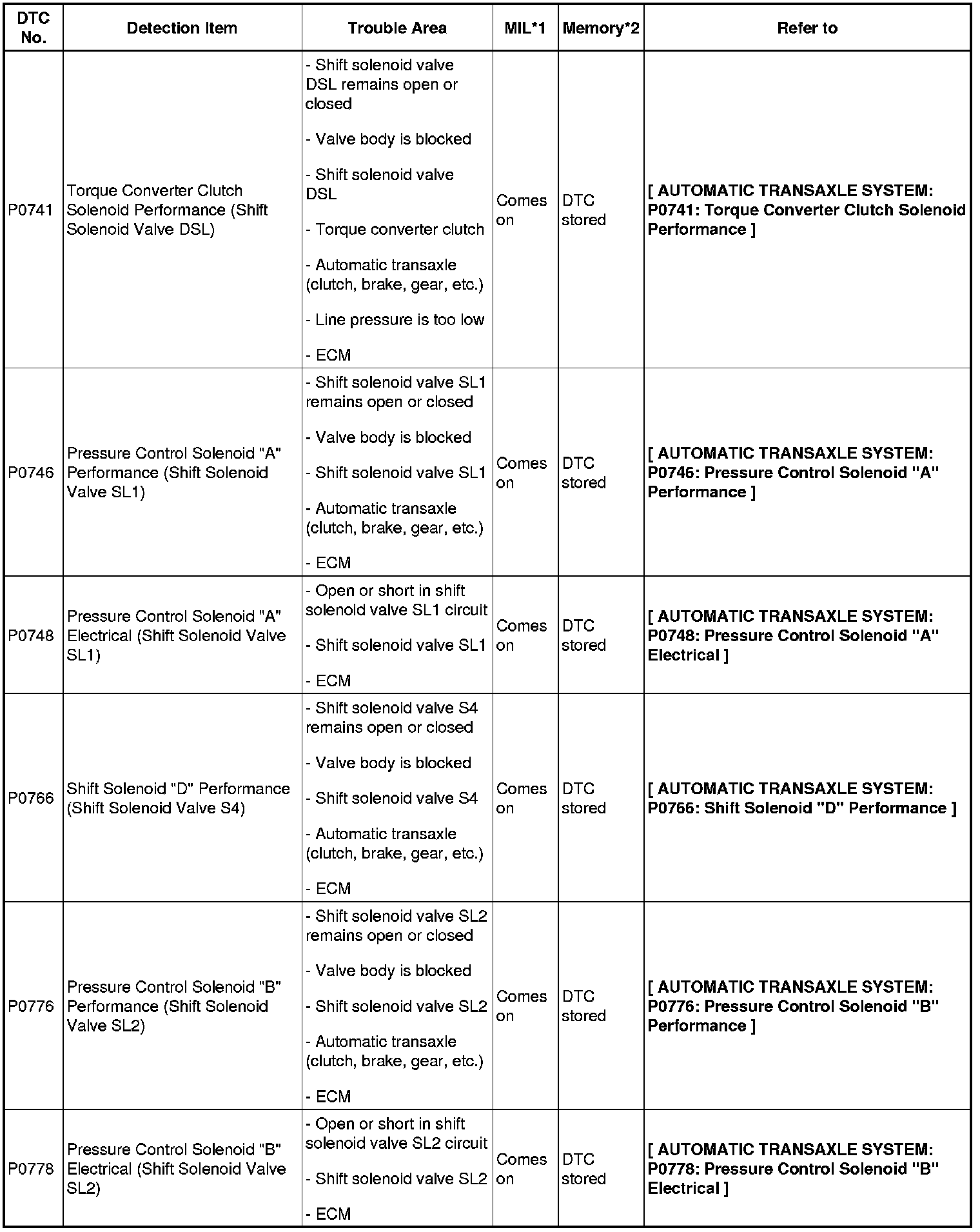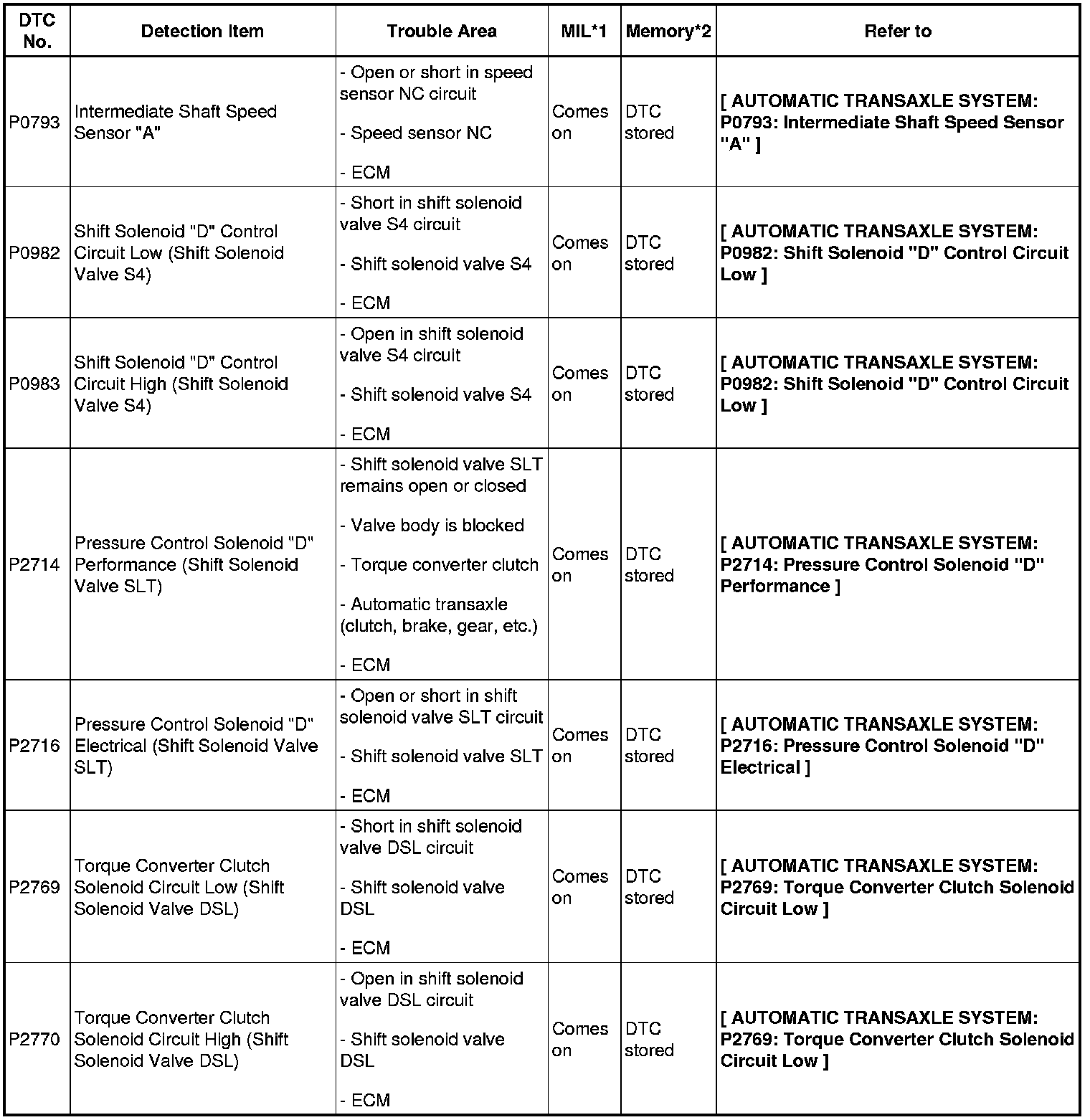 - These DTCs may be output when the clutch, brake, gear components, etc., inside the automatic transaxle are damaged.