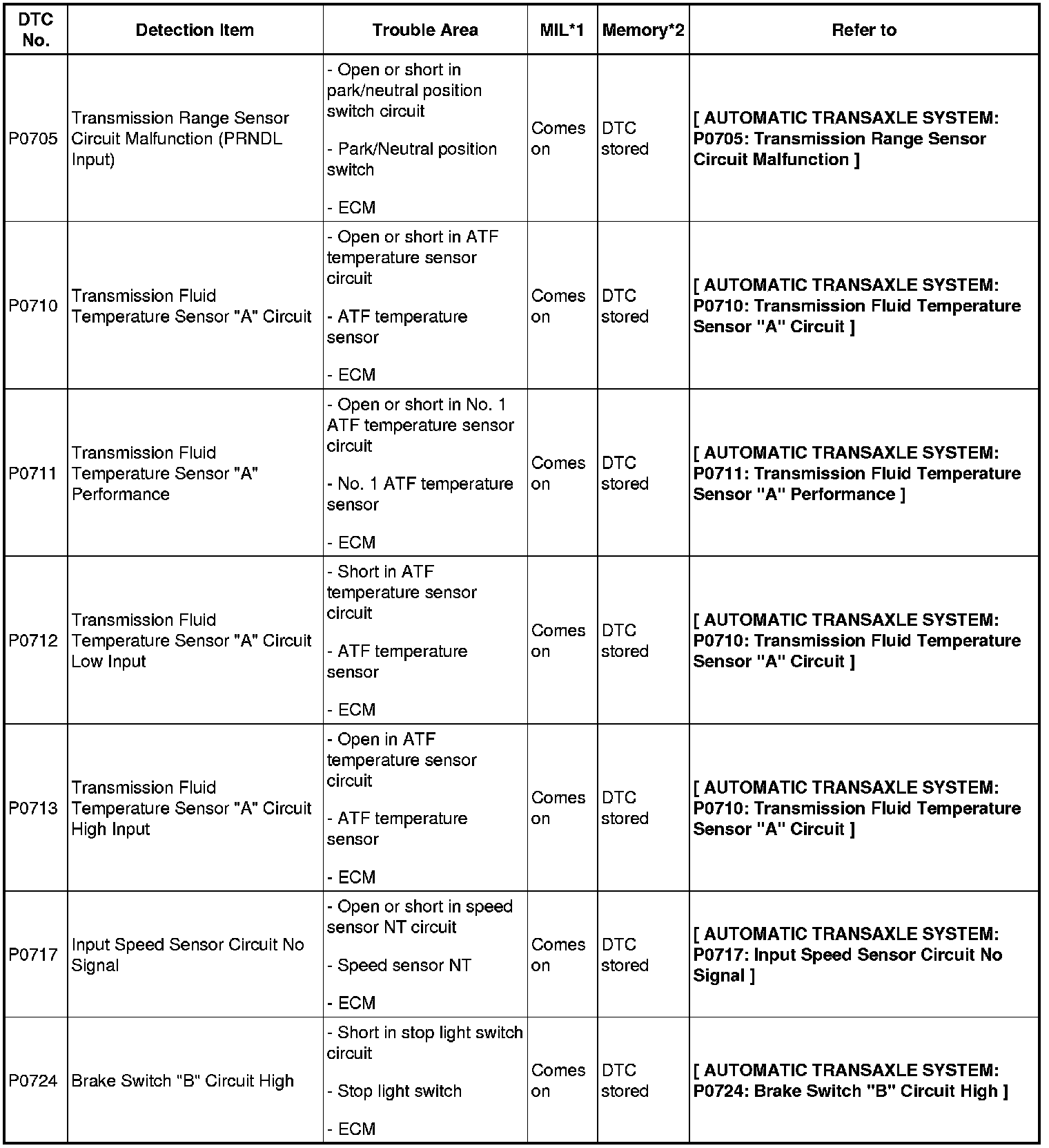 - *2: "DTC stored" means the ECM memorizes the malfunction code if the ECM detects the DTC detection condition.