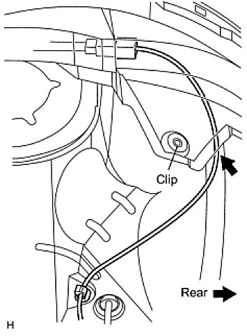 HINT: Install the fender liner so that the sensor wire harness passes beyond the fender liner installation clip towards the rear side of the vehicle.