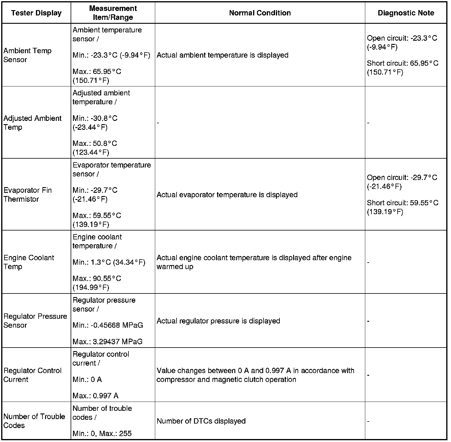 AIR CONDITIONING: AIR CONDITIONING SYSTEM (for Manual Air Conditioning System): DATA LIST / ACTIVE TEST