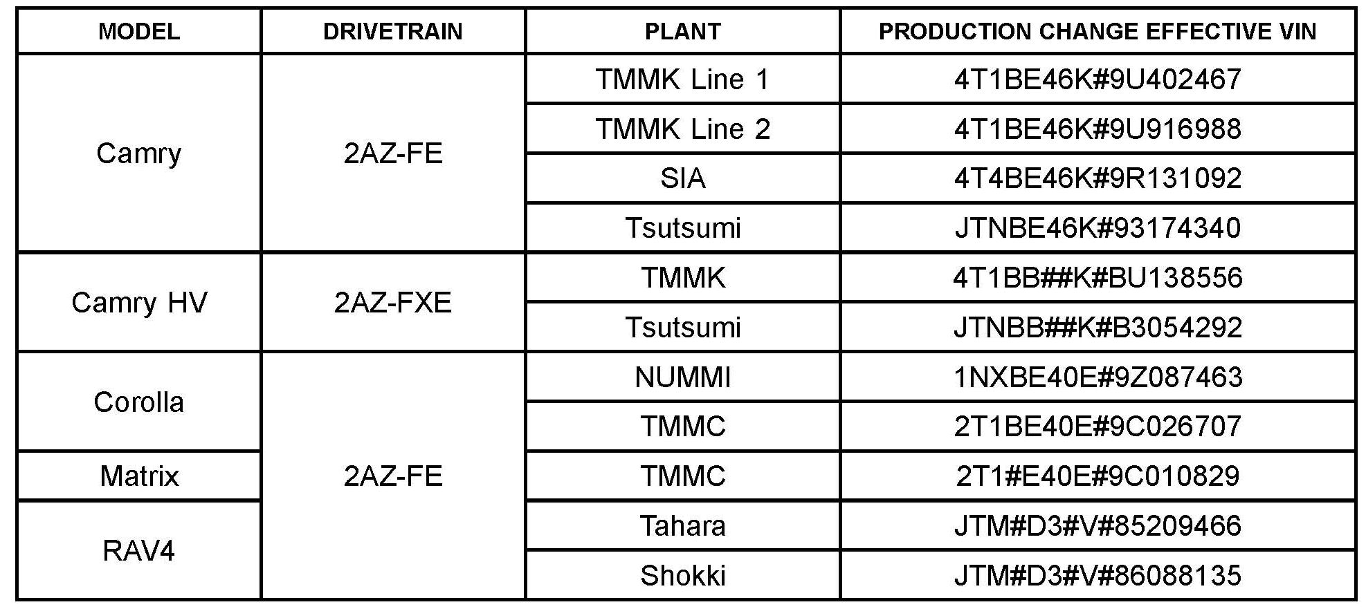 Vehicles produced BEFORE the Production Change Effective VINs shown.