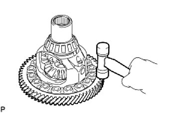 (a) Using SST, tap out the front differential case front tapered roller bearing from the differential case.