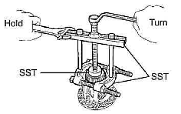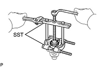 (a) Using SST, remove the front differential case rear tapered roller bearing from the differential case.