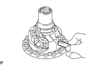 (a) Remove the 2 front differential pinions, 2 pinion thrust washers, 2 front differential side gears and 2 side gear thrust washers from the differential case.