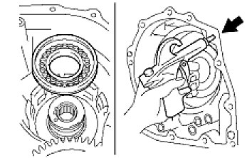 (d) Using a brass bar and hammer, tap out the 2 bearing outer races.