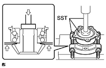 (a) Using SST and a press, press out the driven pinion from the bearing.