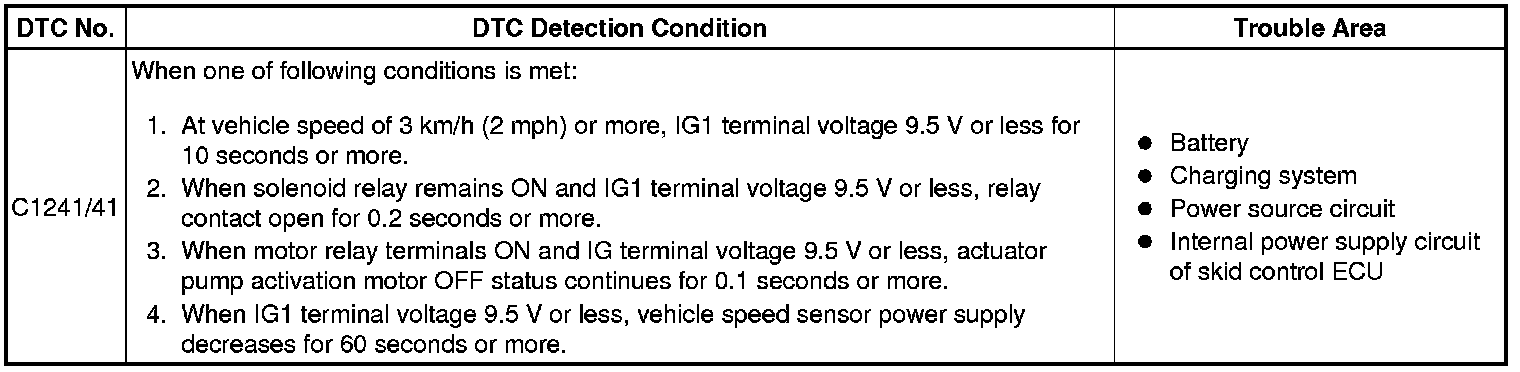 BRAKE CONTROL: VEHICLE STABILITY CONTROL SYSTEM: C1241/41: Low Battery Positive Voltage