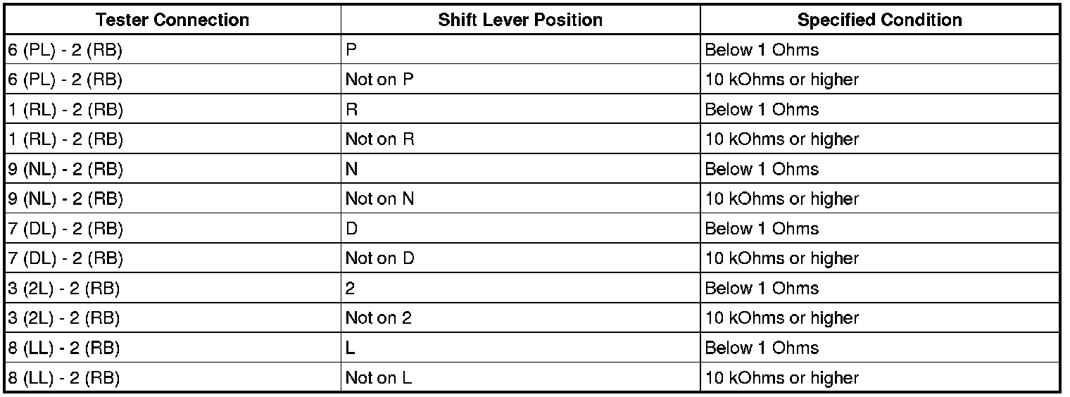 (a) Measure the resistance of the switch when the shift lever is moved to each position.