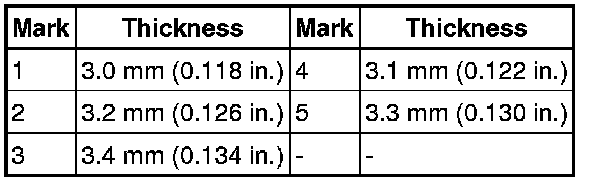 1.16 to 1.35 mm (0.0457 to 0.0531 in.)