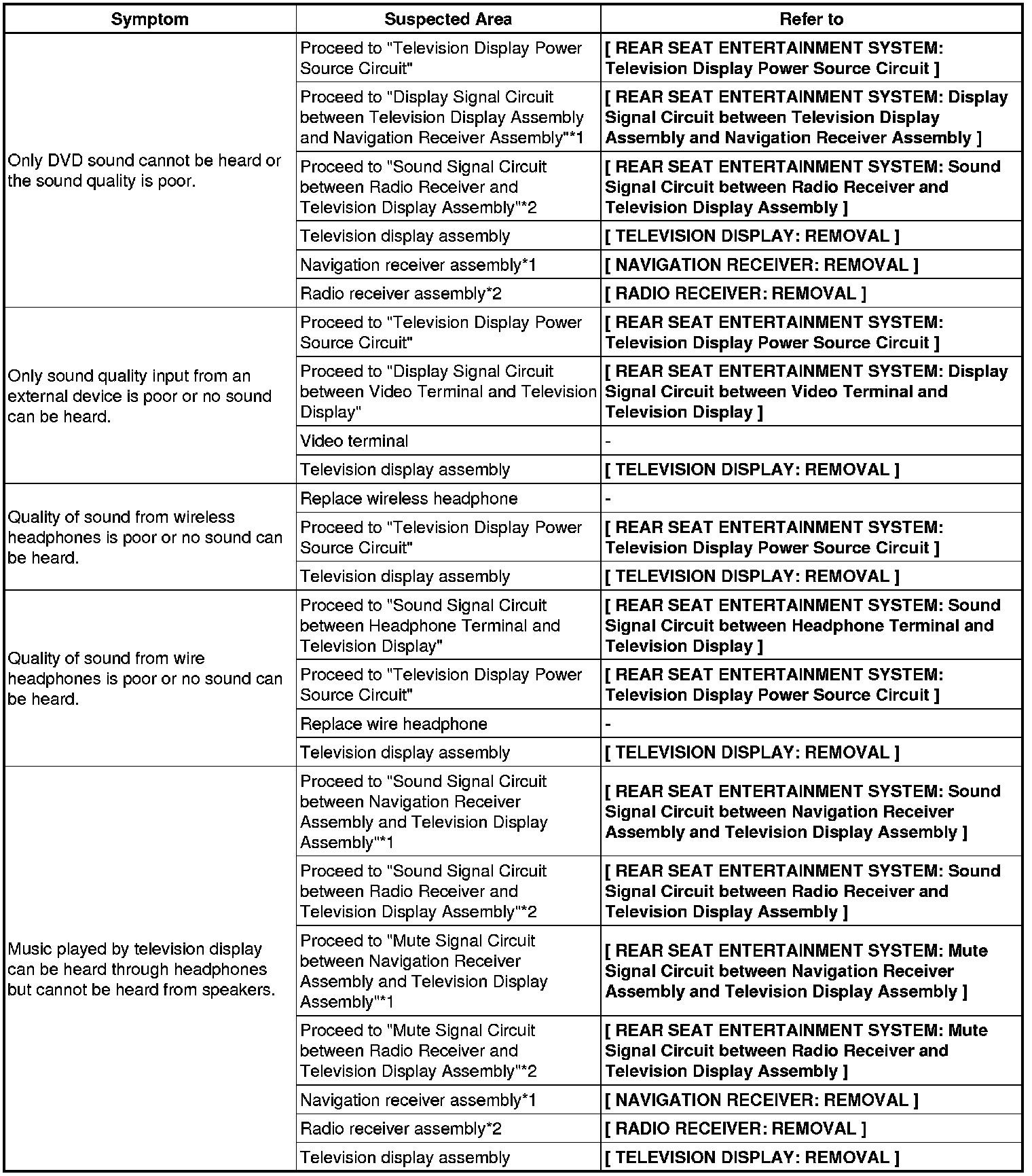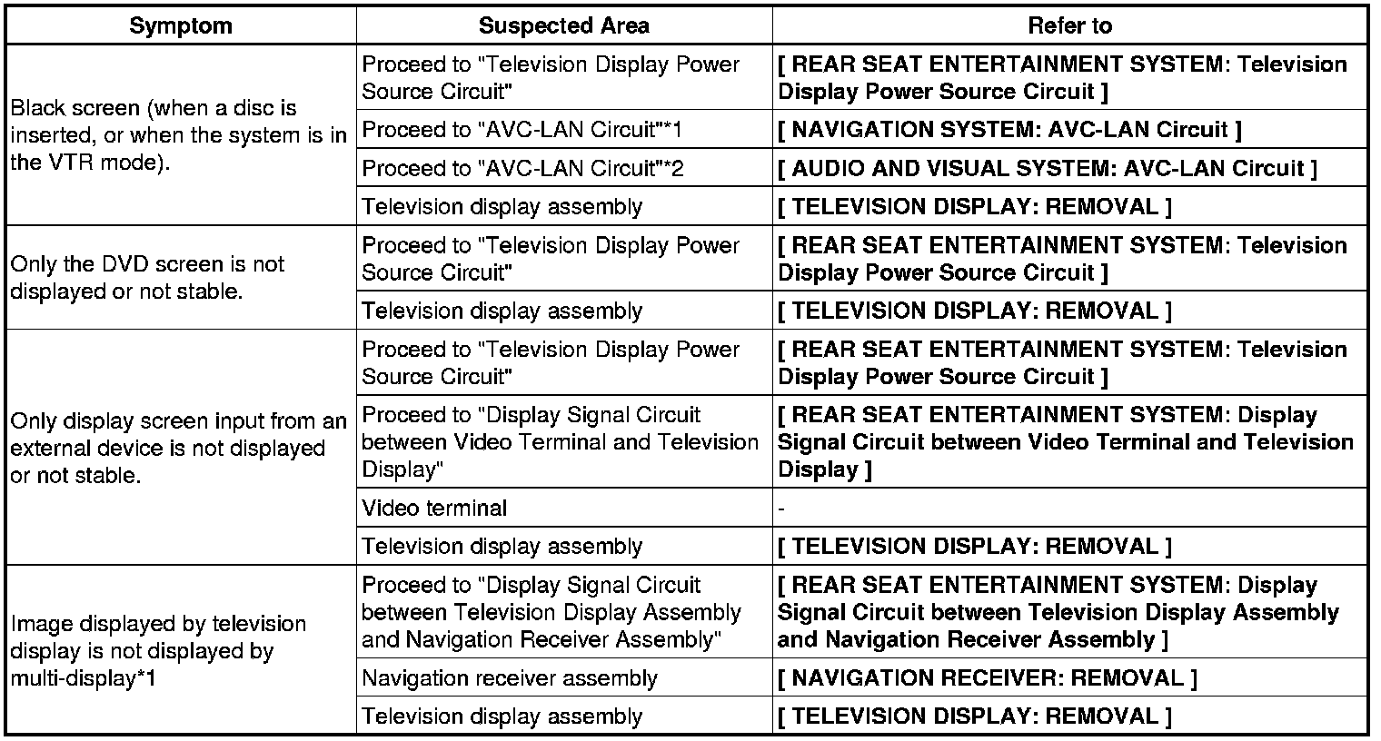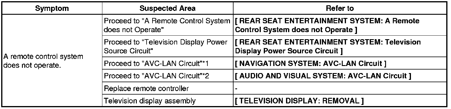 AUDIO / VIDEO: REAR SEAT ENTERTAINMENT SYSTEM: PROBLEM SYMPTOMS TABLE