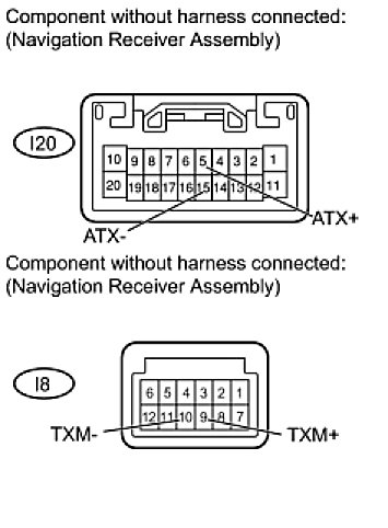(a) Disconnect the I20 and I8 navigation receiver assembly connectors.