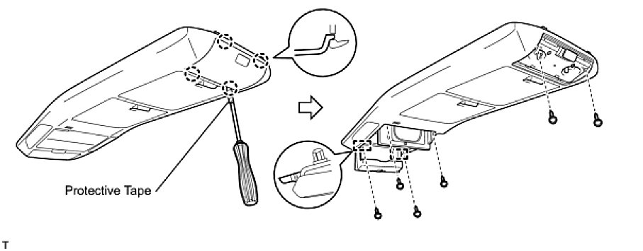 (b) Disengage the 2 guides and using a "TORX" socket wrench T20, remove the 6 screws.