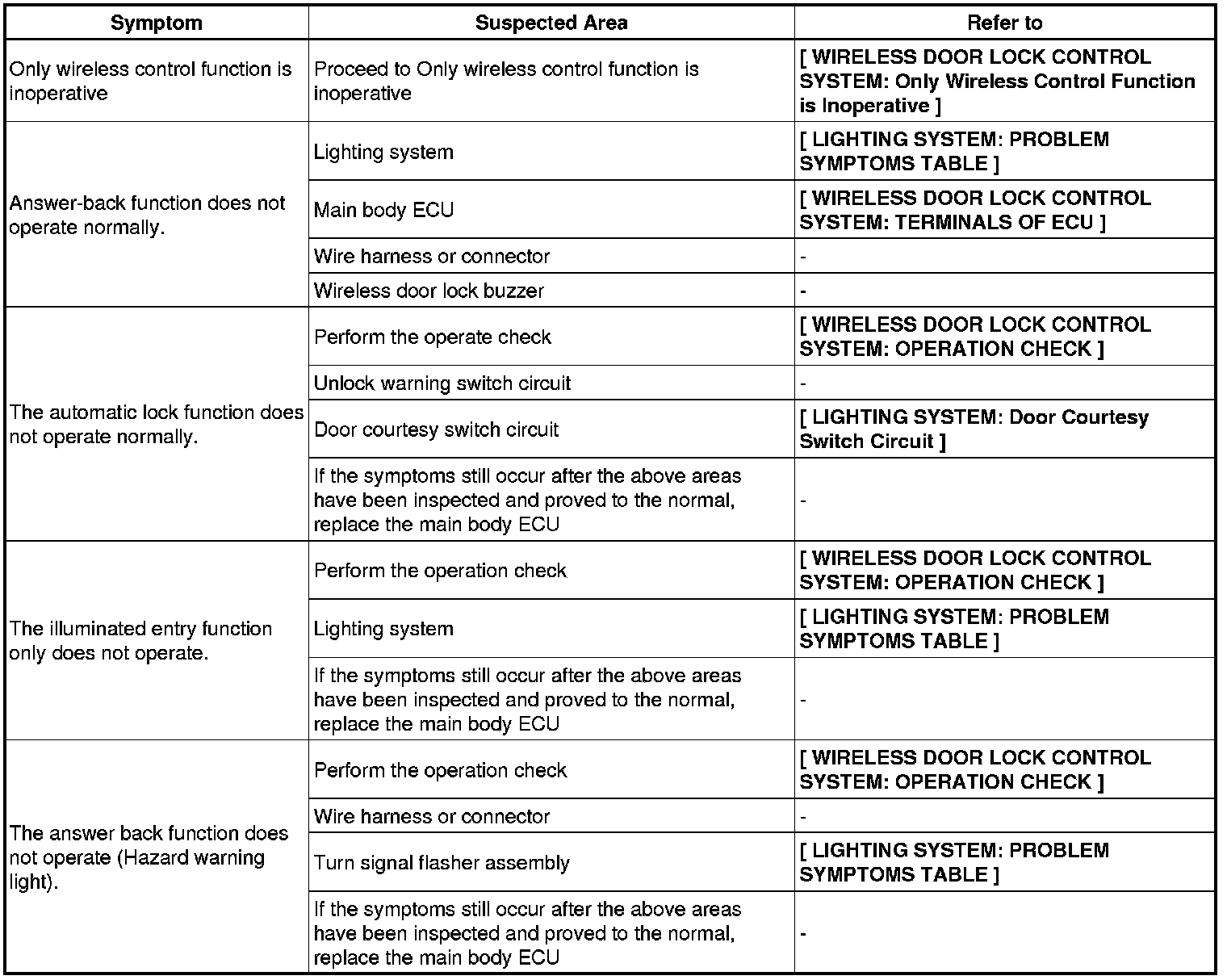 DOOR LOCK: WIRELESS DOOR LOCK CONTROL SYSTEM: PROBLEM SYMPTOMS TABLE