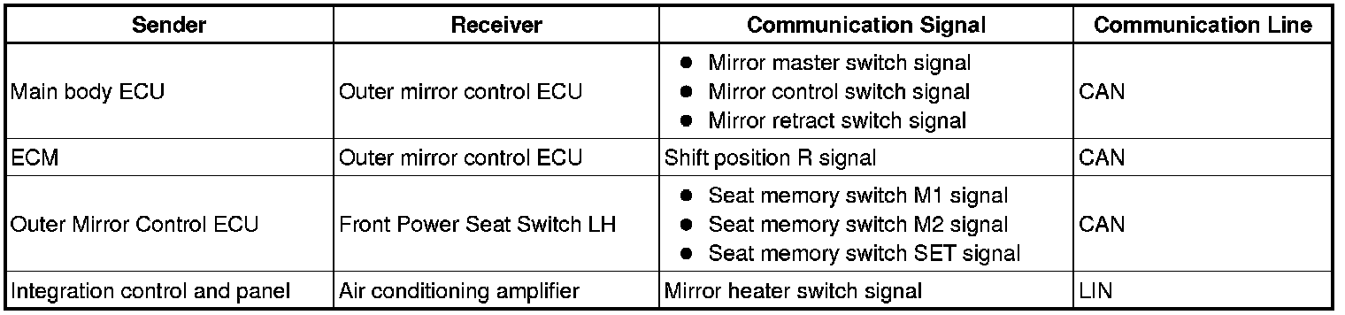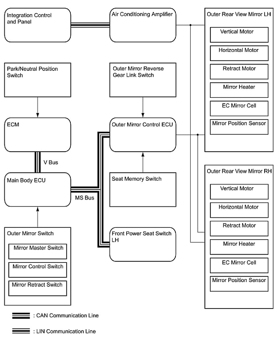 MIRROR (EXT): POWER MIRROR CONTROL SYSTEM (w/ Memory): SYSTEM DIAGRAM
