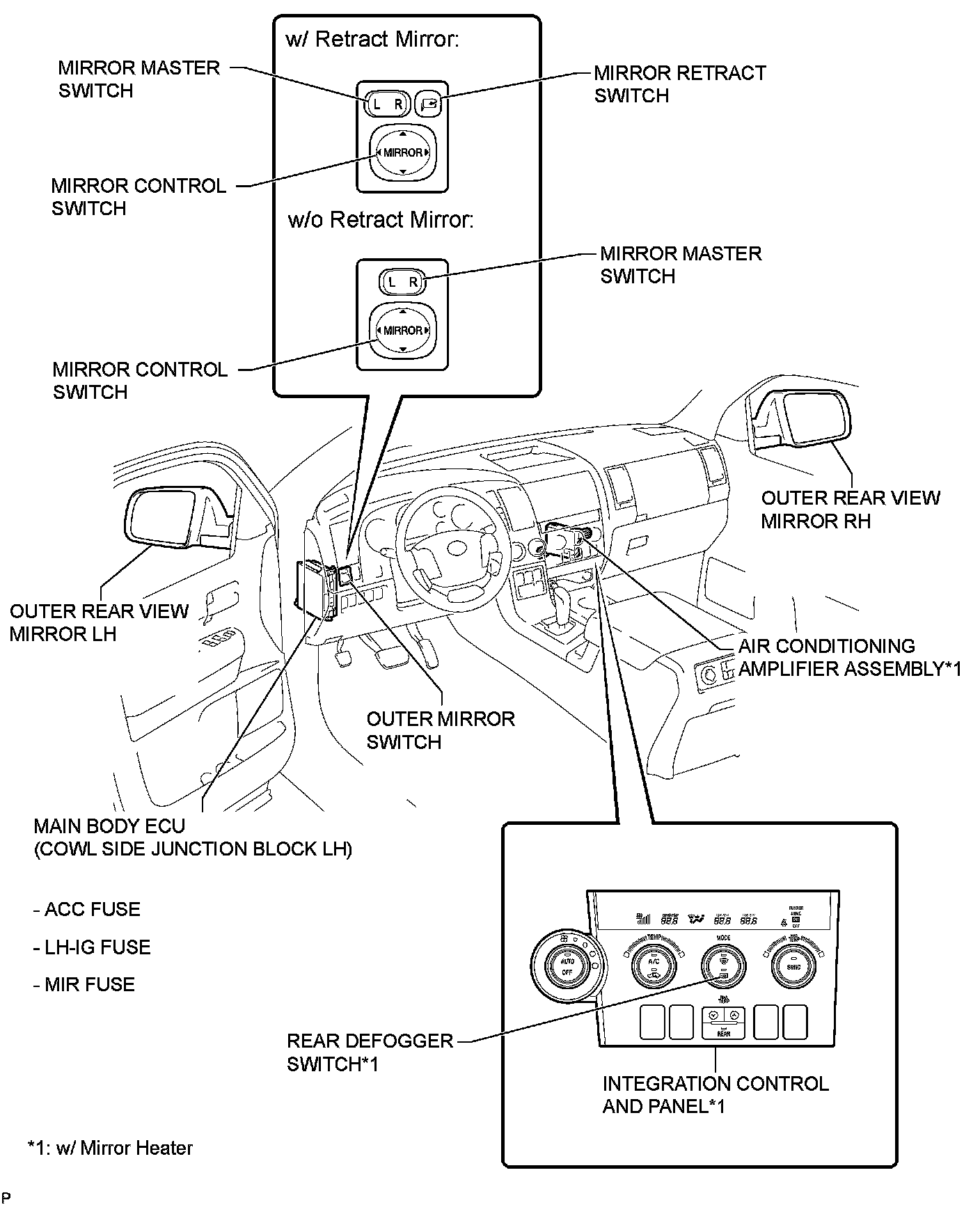 MIRROR (EXT): POWER MIRROR CONTROL SYSTEM (w/o Memory): PARTS LOCATION