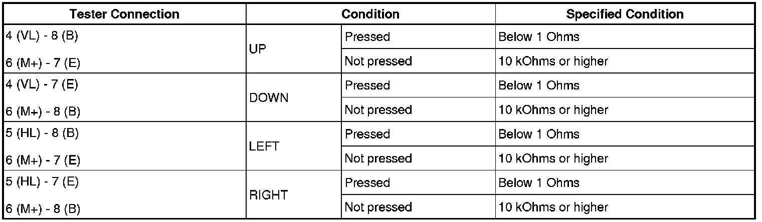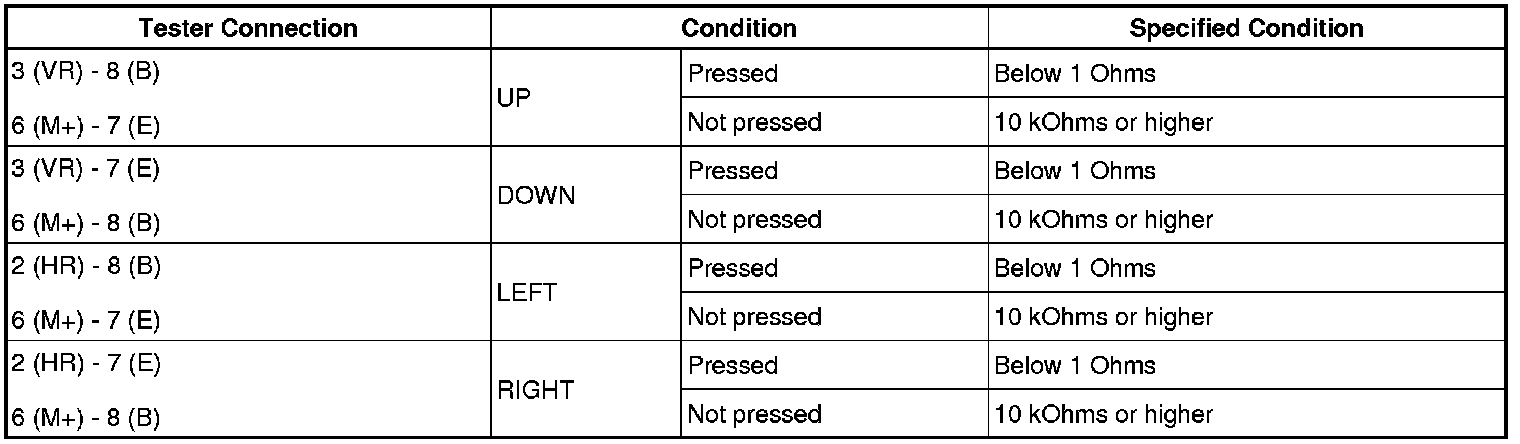 (4) Using an ohmmeter, measure the resistance and check the results in accordance with the value(s) in the table below.