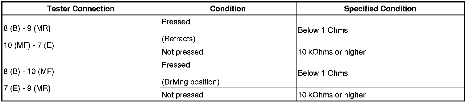 If the result is not as specified, replace the outer mirror switch.