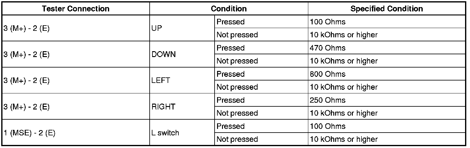 MIRROR (EXT): OUTER MIRROR SWITCH: INSPECTION
