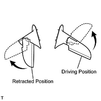 (7) Check that the forward position mirror moves to the retracted position, and check that the driving position mirror moves to the retracted position.