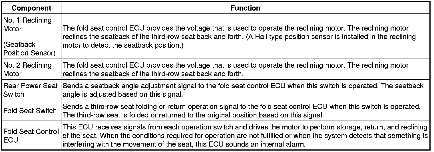 SEAT: REAR POWER SEAT CONTROL SYSTEM: SYSTEM DESCRIPTION