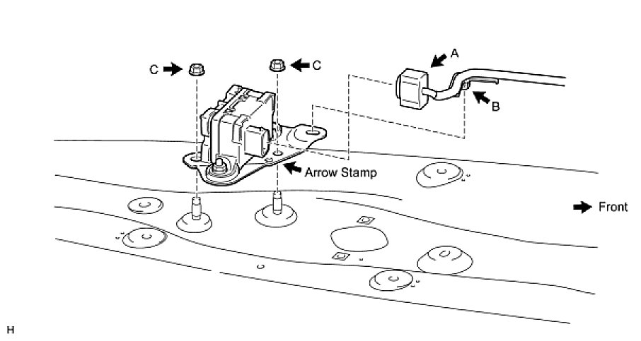 (b) Install the yaw rate sensor with the 2 nuts (labeled C).