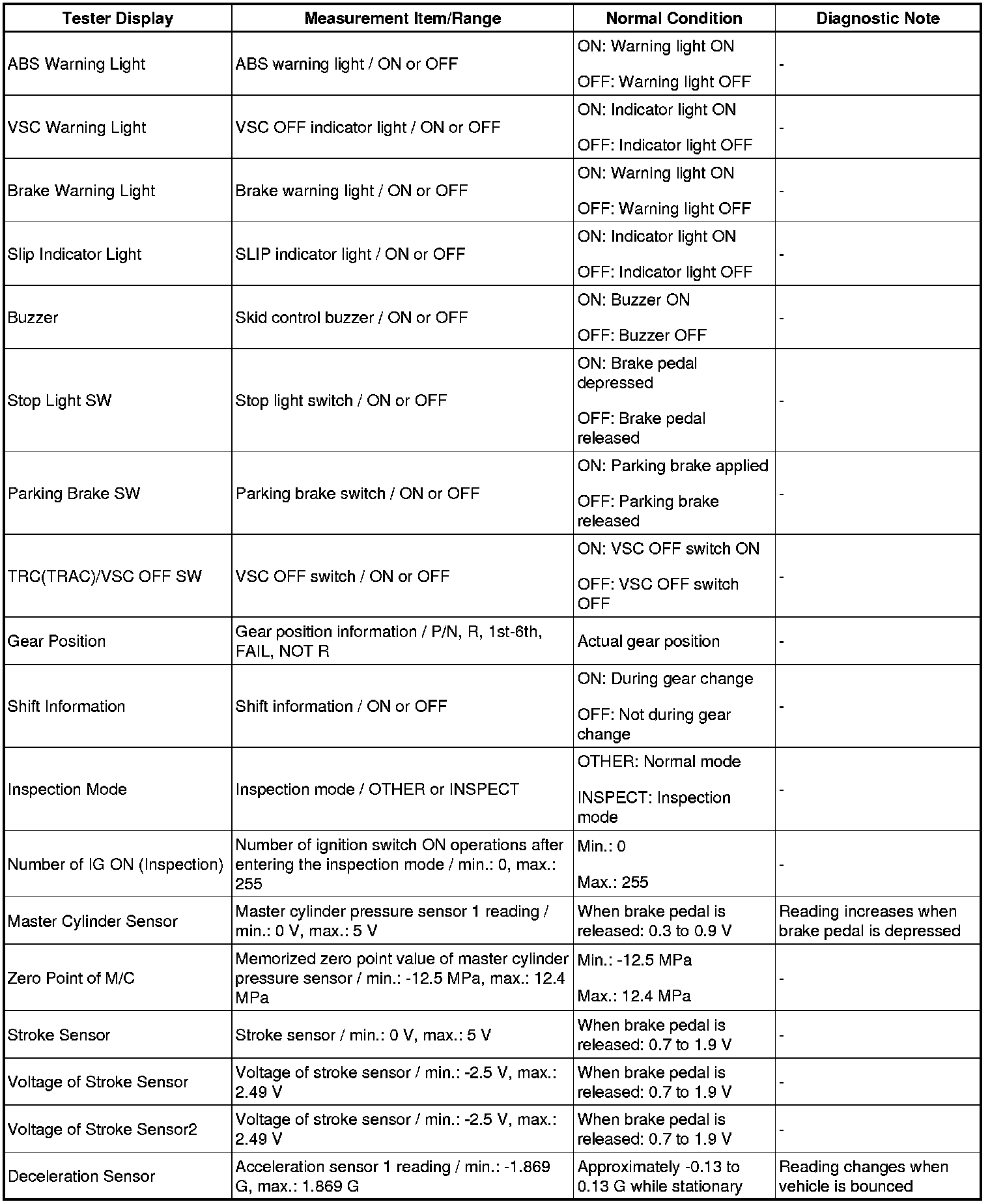 HINT: Using the Techstream to read the Data List allows the values or states of switches, sensors, actuators and other items to be read without removing any parts. This non-intrusive inspection can be very useful because intermittent conditions or signals may be discovered before parts or wiring is disturbed. Reading the Data List information early in troubleshooting is one way to save diagnostic time.