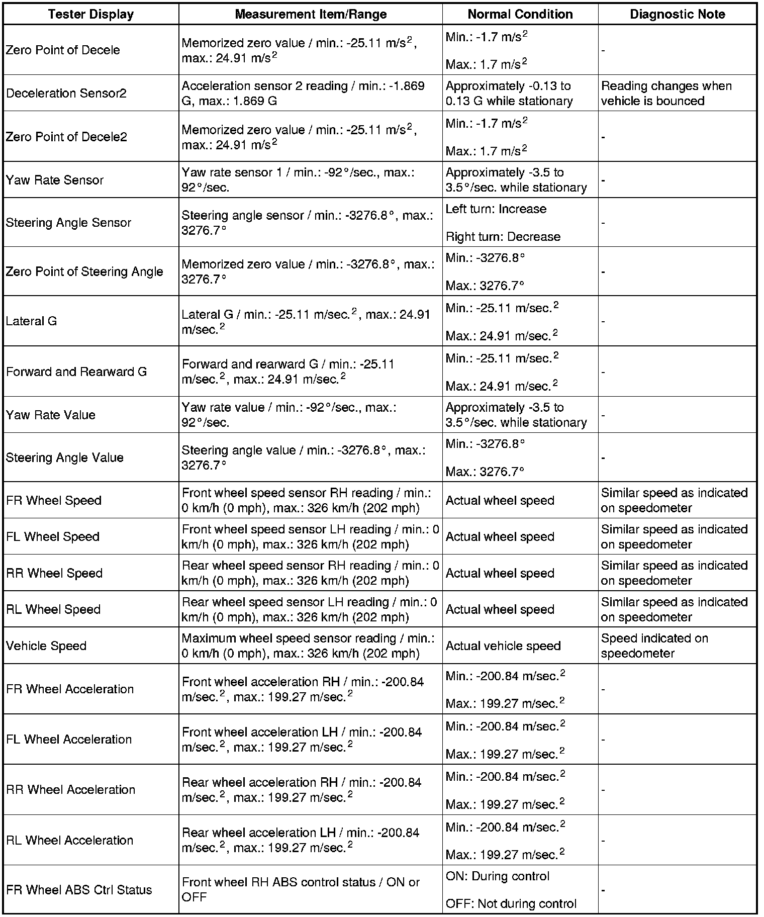 BRAKE CONTROL / DYNAMIC CONTROL SYSTEMS: VEHICLE STABILITY CONTROL SYSTEM: DATA LIST / ACTIVE TEST